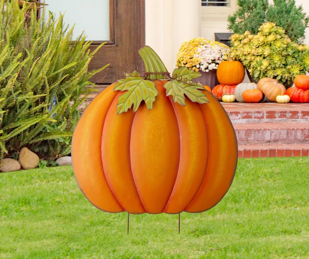 If you’re looking for outdoor fall décor, this yard sign is the perfect choice. With a charmingly festive oversized pumpkin design and quality metal build, this stake is a durable and practical choice for decorating your home this autumn.