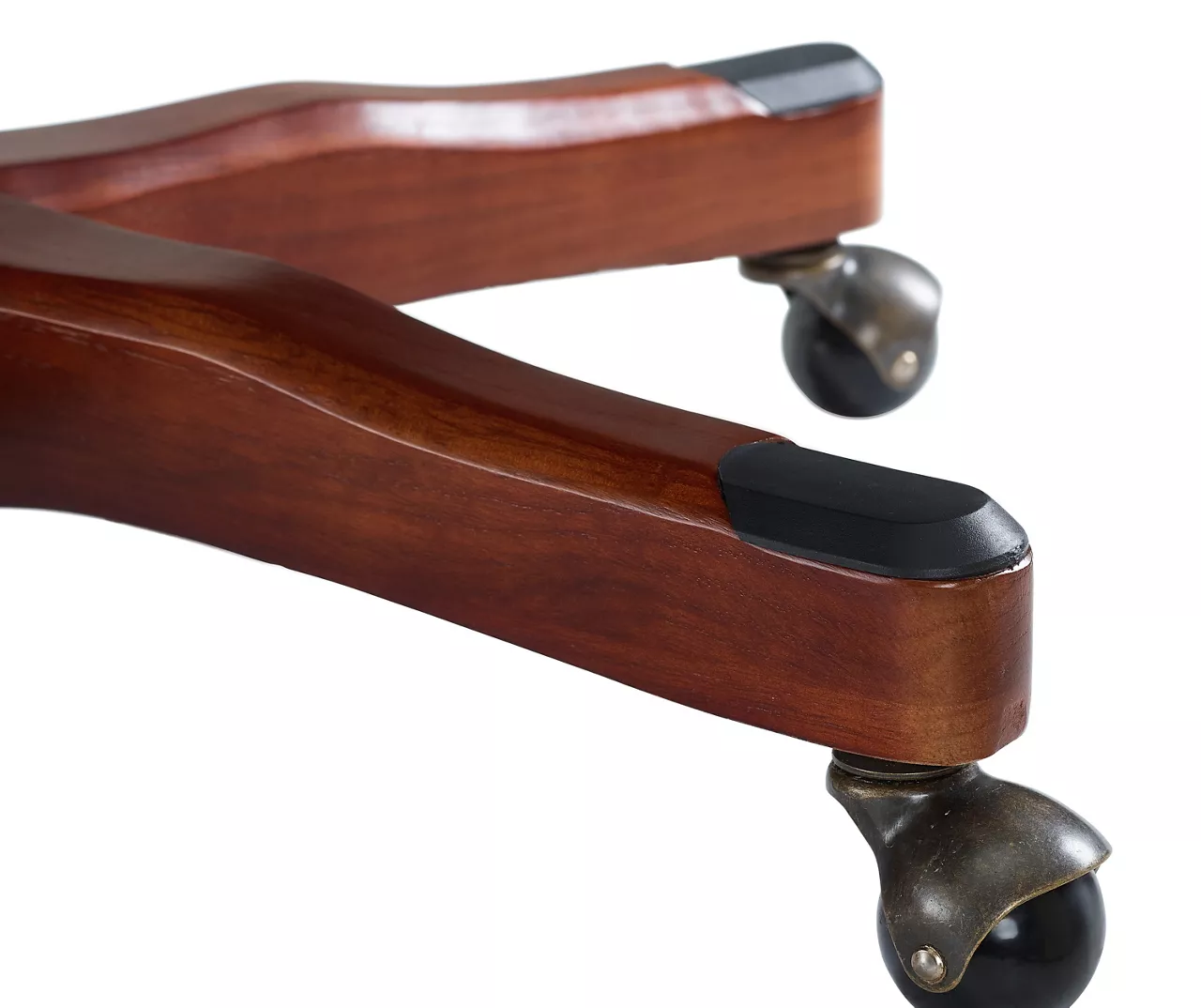 Add style and comfort to your office with this Austin office chair. The soft, plush frame is upholstered in a neutral cow print fabric and accented with antique brass nailheads. A walnut wood base has metal casters that provide for easy mobility around your office space. The adjustable seat height ensures this chair works for a variety of table heights.