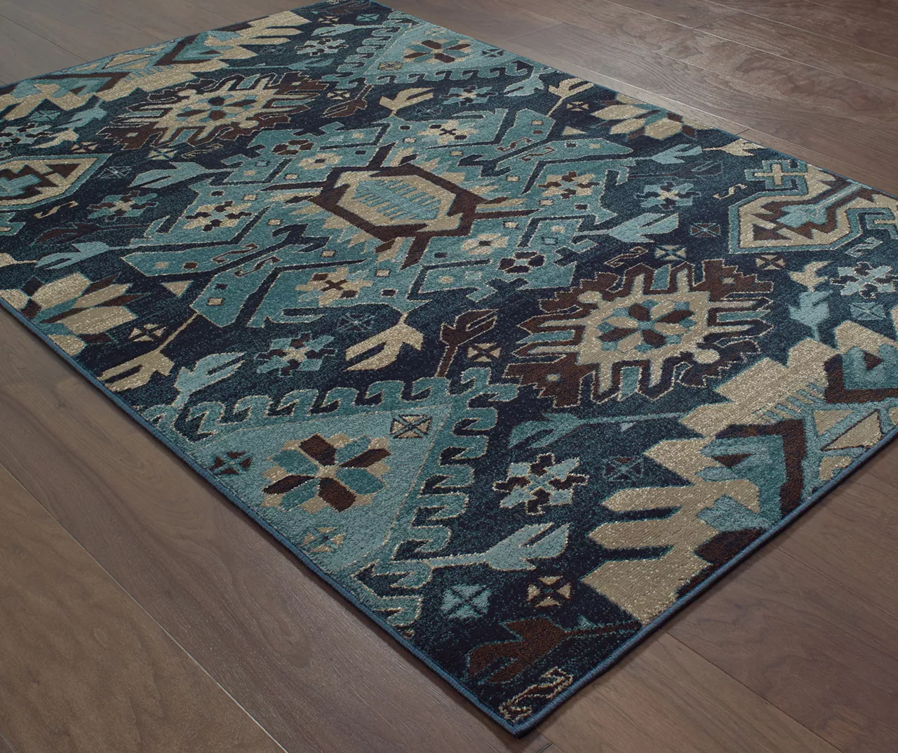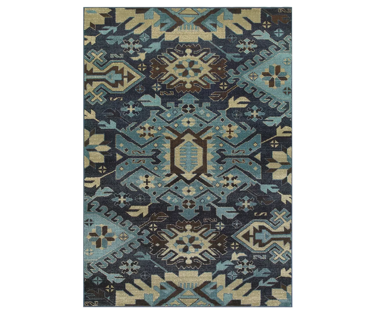 Adorn your floor in southwest design with this area rug, featuring geometric elements in blue and beige. Gorgeous tones and durable materials are ideal for any space and complement a large variety of furniture and décor. Place in the living room or bedroom for maximum appeal.