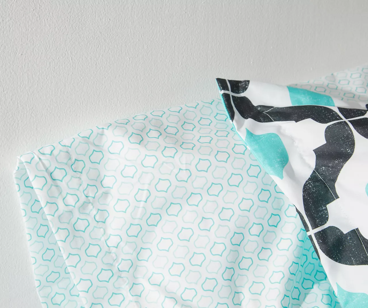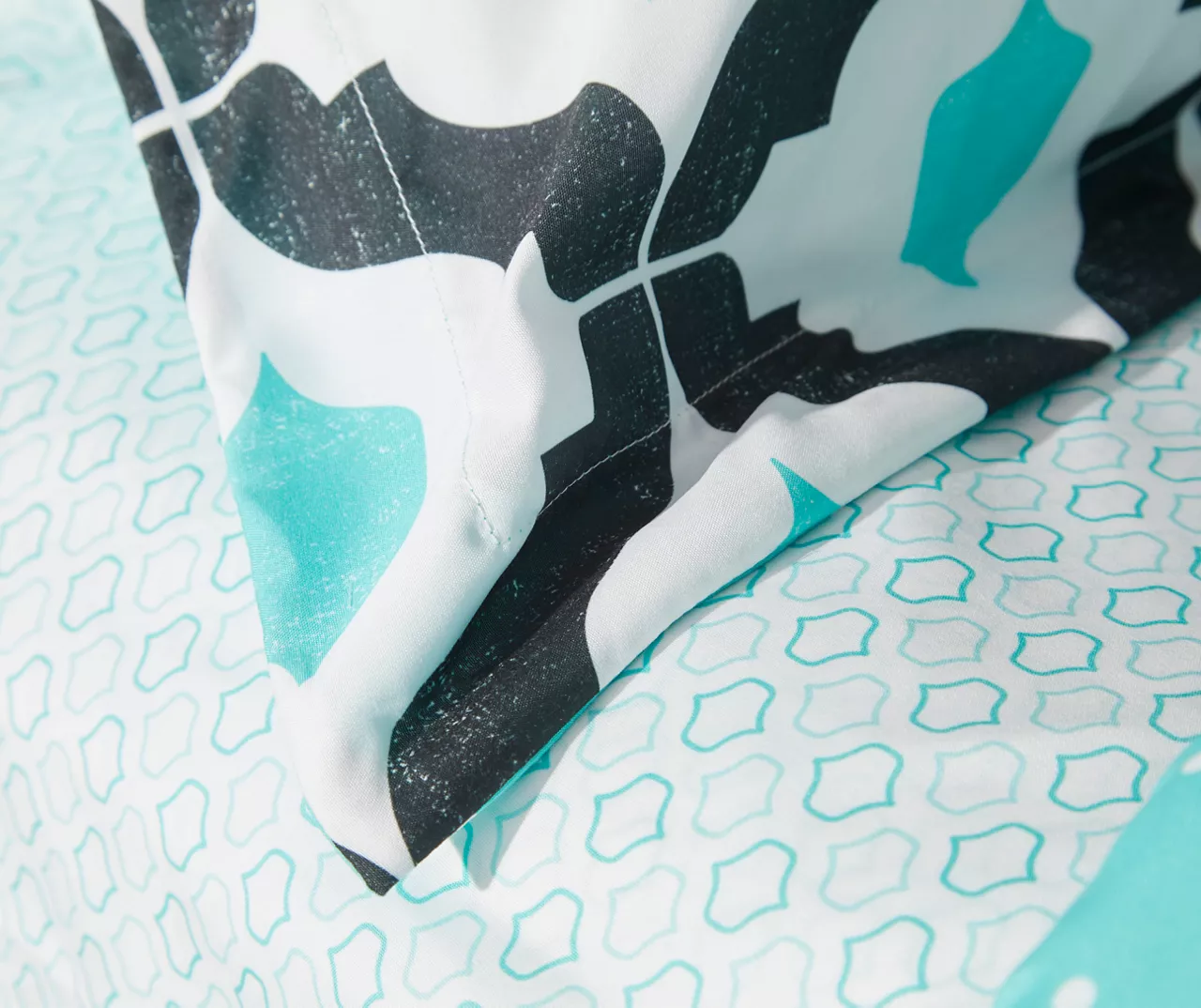 Refresh a kids’ or guest bedroom from headboard to footboard with the bold black, aqua and white arabesque pattern of this all-in-one bedding set from Real Living. Soft microfiber fabric is sure to keep you cozy and comfy through the night.