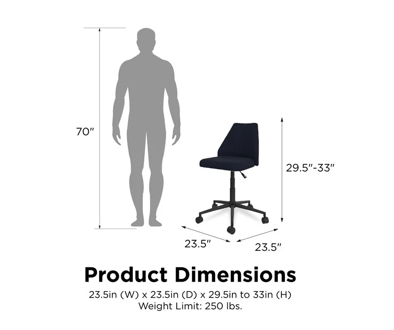 The Novogratz Brittany Office Chair with Casters is the ideal mix of modern and mid-century! Stuffed with comfortable foam cushioning, this armless chair delivers both style and flair. It has been crafted with a durable wood frame construction and rich linen upholstery. The Brittany features a ribbed tufted cushioned back with piping details and metal legs. Its iconic design provides ample back support to allow you to sit in complete comfort while working on your computer at your desk, reading the latest bestselling novel or catching up with the latest gossip on your tablet.