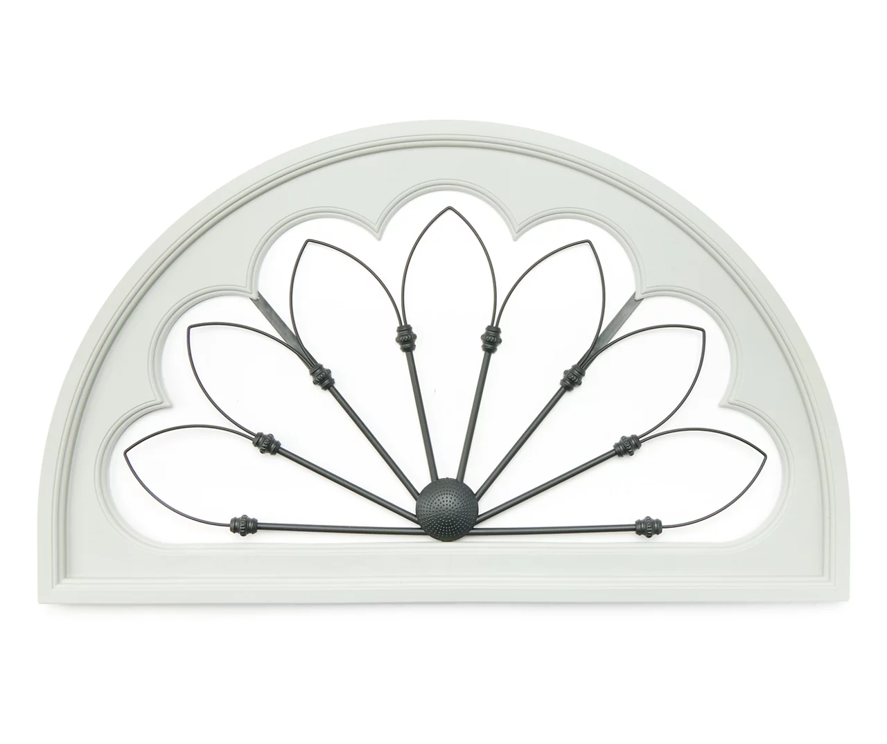 Flaunting a metal fan design framed by an arching gray border, this decorative piece makes an elegant architecture-inspired addition to your decorative arrangements. The neutral palette easily complements your décor and the open design allows you to create layered arrangements.
