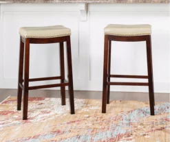 Seat yourself around the table for delicious meals and conversation with these Real Living Marley dining chairs. Each chair features a timeless slat backrest and frame in a light walnut finish that creates a two-tone look with the neutral upholstered seat cushion. This set of two chairs is a classic addition to an eat-in kitchen or dining room table.