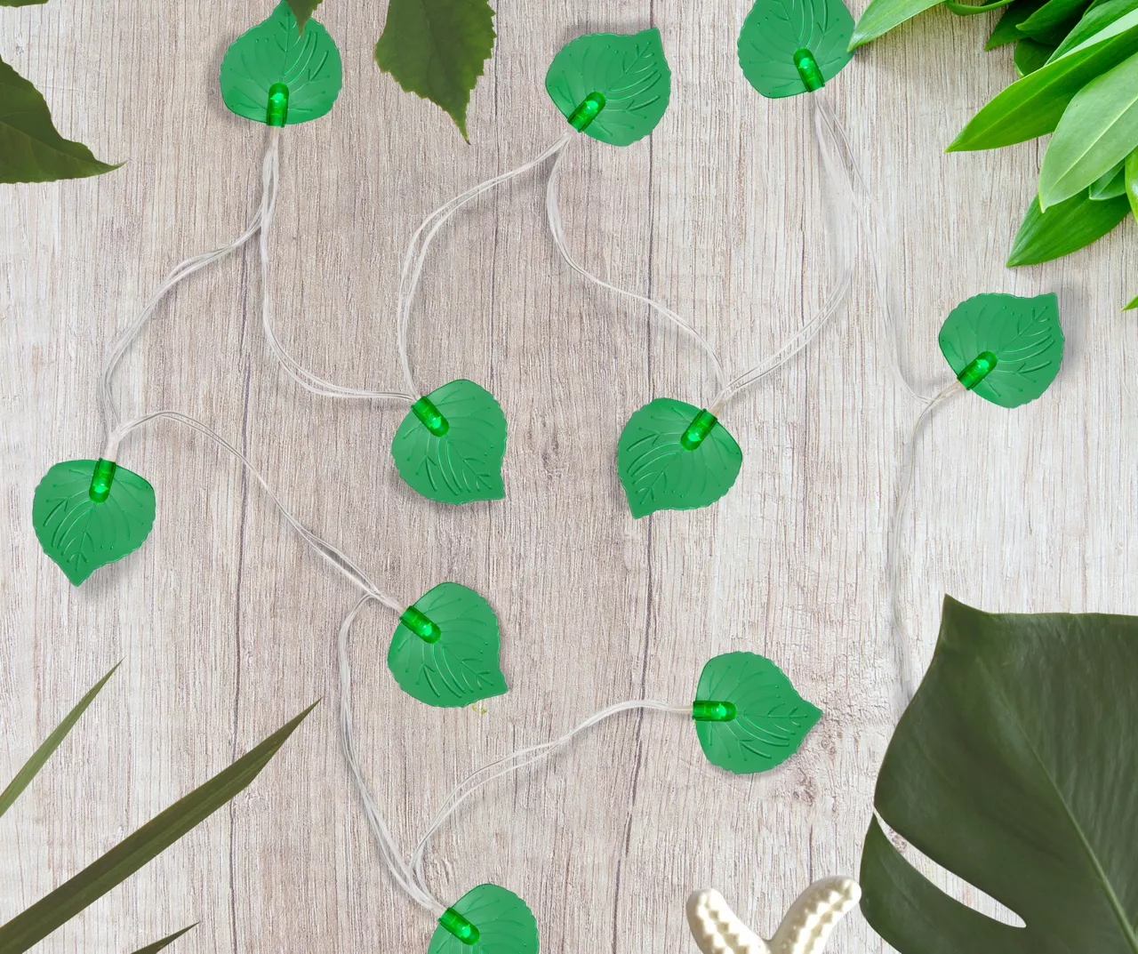 These small palm leaf-shaped LED copper wire lights will introduce personality to your décor. The clear wire means that these lights are extremely versatile. The battery-operated feature allows these lights to be placed in more places without the need of an outlet. Perfect for adding some tropical magic to a wreath, tree, garland or add to your lanterns and vases for some sparkle.