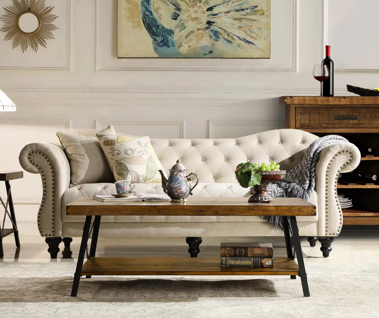 - The Pomona end table brings a rustic, industrial touch to your home with distressed wood surfaces and metal accents