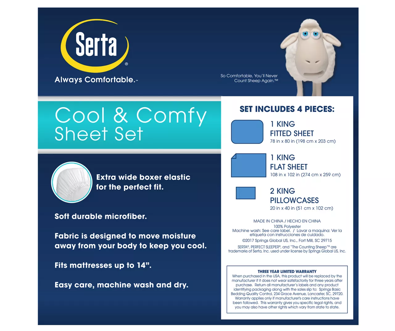 - Includes 1 – flat sheet, 1 – fitted sheet and 2 – standard pillowcases