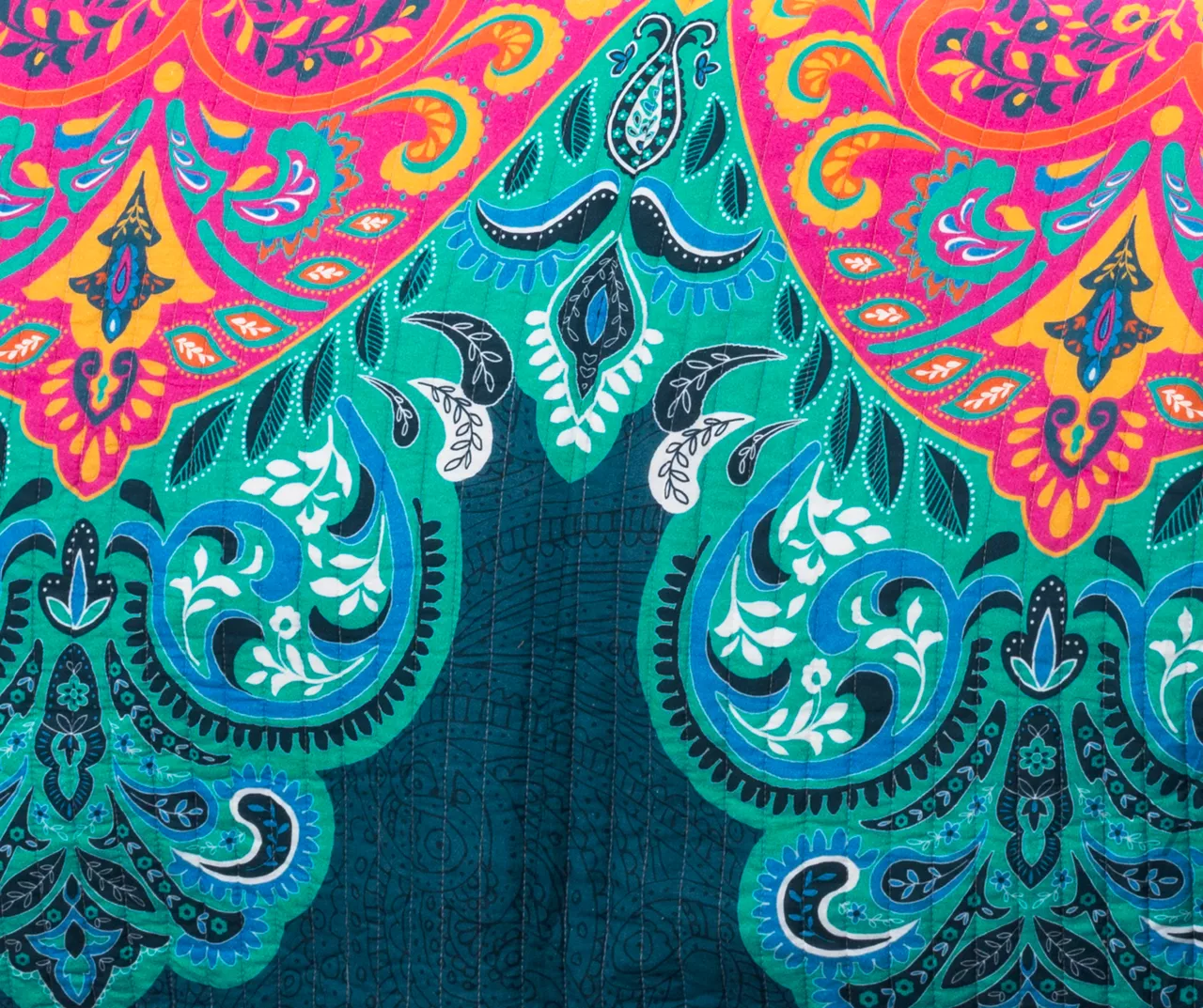 - Ornate paisley boho print on the front in vibrant jewel-tone hues